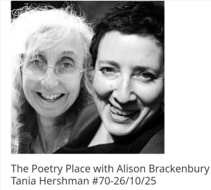 Oct 26th: I was delighted to be a guest on The Poetry Place on West Wilts Radio, you can here me talk about my new book and read an excerpt here (starts around minute 31): https://www.mixcloud.com/West_Wilts_Radio/the-poetry-place-with-alison-brackenbury-tania-hershman-70-261025/